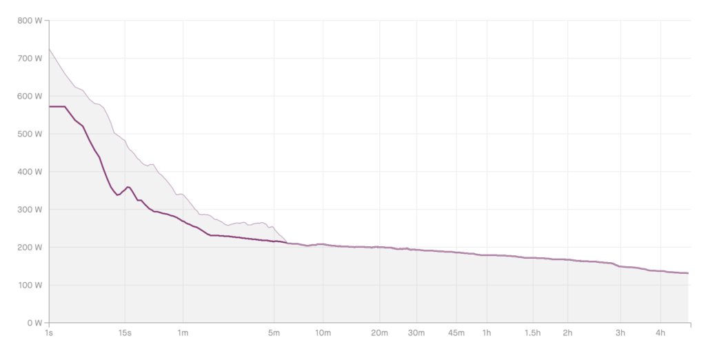 Finally, some great news in terms of my power curve. Six (6) minute power and over is best it’s been over the past six (6) weeks. Crazy. Definitely coming back after that groin injury last year.