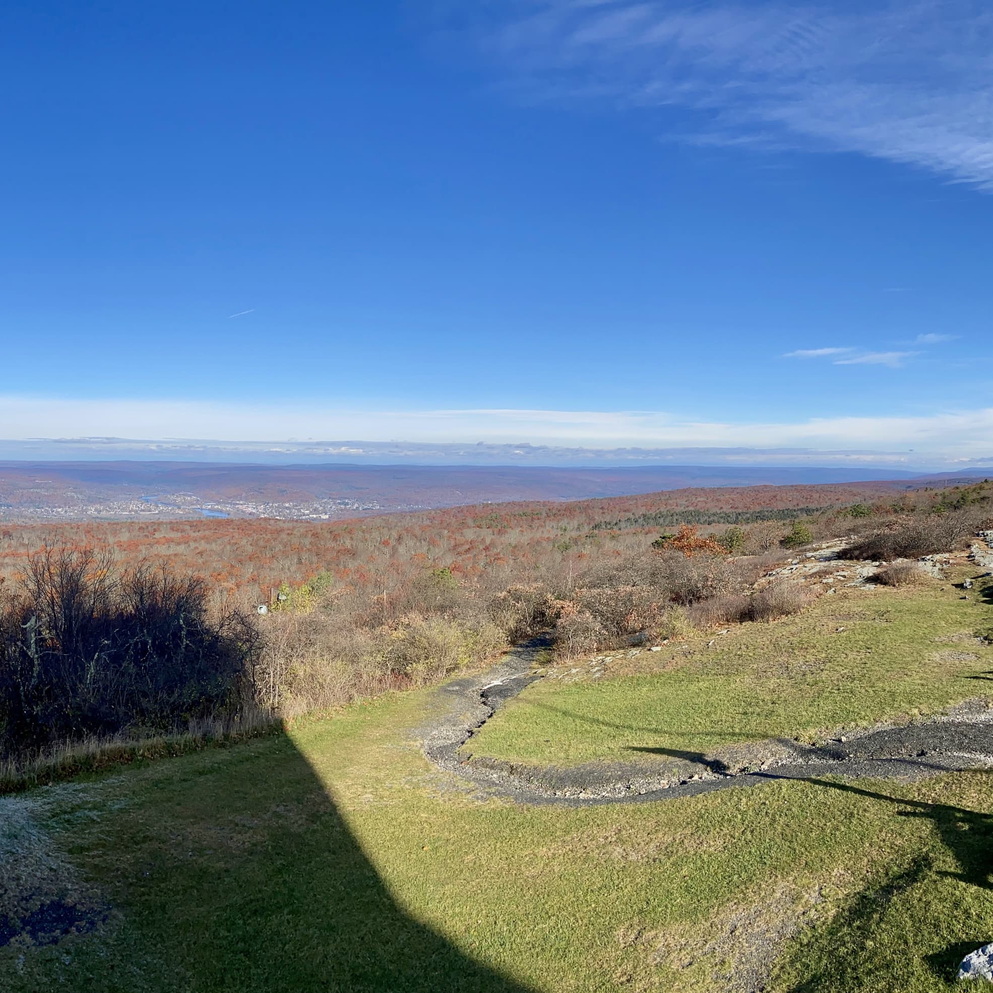 On our way to visit my aunt’s for the holiday’s, we took advantage of being in northern New Jersey to hike along the Appalachian Trail leading to High Point, NJ. It was a chilly yet beautiful day to be outside. Starting off around 9am the temperature was 35 F. By the time we finished and arrived back at the car it had improved to 44 F. The clear skies and warm sun meant that for the hike back down we could lose the gloves and unzip our jackets.