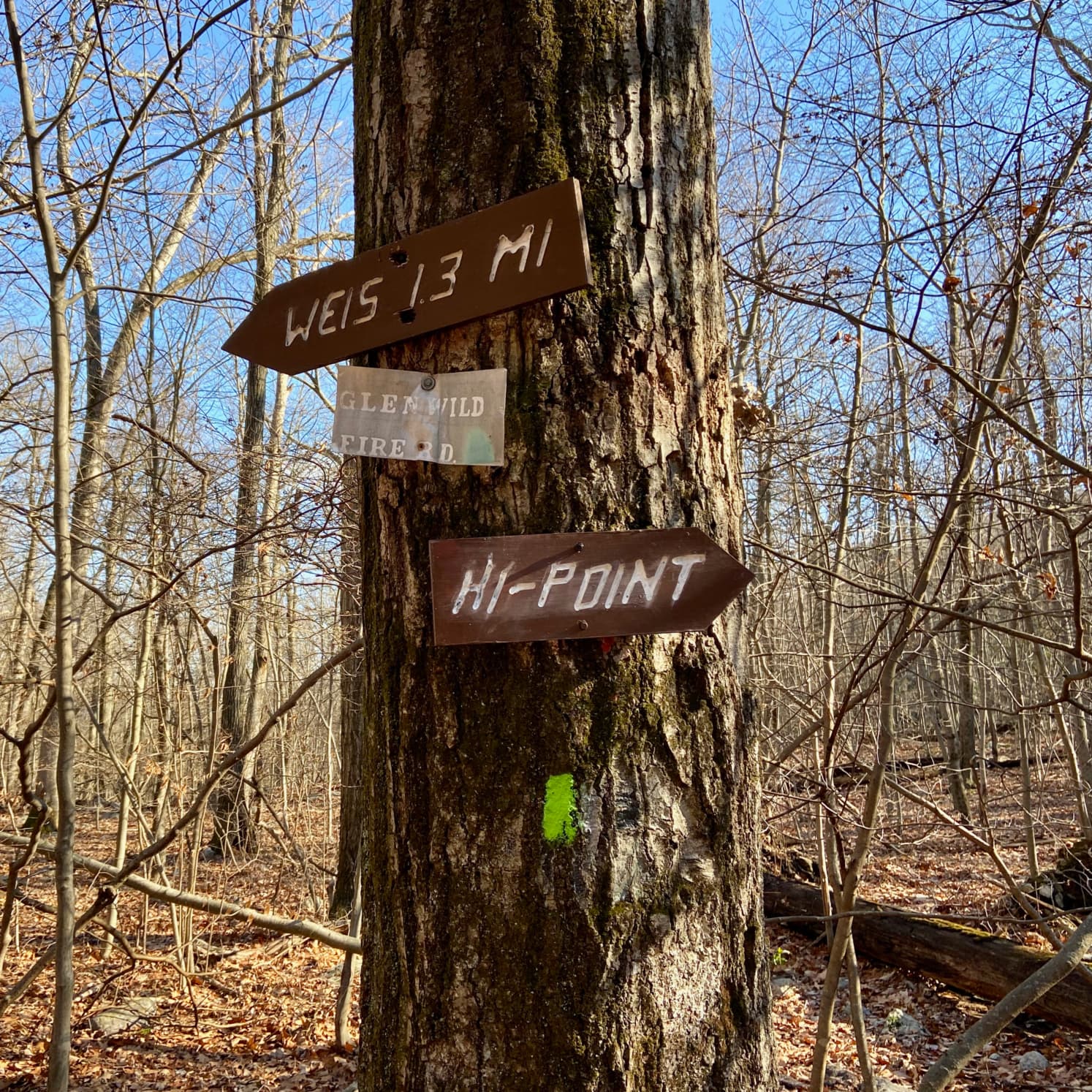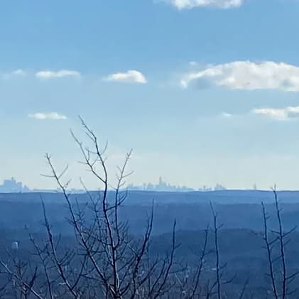 A neat feature of this hike, and one I apparently did not expect in my research ahead of time, is that from the “high point” lookout in the park you can get a good view of New York City. It was a pretty clear day and we did see a nice city outline on the horizon! I have cropped one poor iPhone 11 photo in the gallery below and enhanced it a bit to give clear distinction to the buildings rising up in the distance.