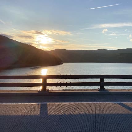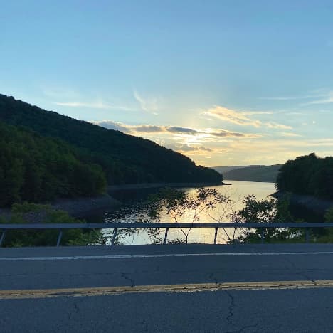 After dinner I took the long way around to my campsite, riding along the edge of Pepacton Reservoir (which apparently is one of key reservoirs feeding fresh water into New York City!). The freedom and joy a person can get from riding a motorcycle around a curvy road, looking out of the water, and watching the sun set is incredible.