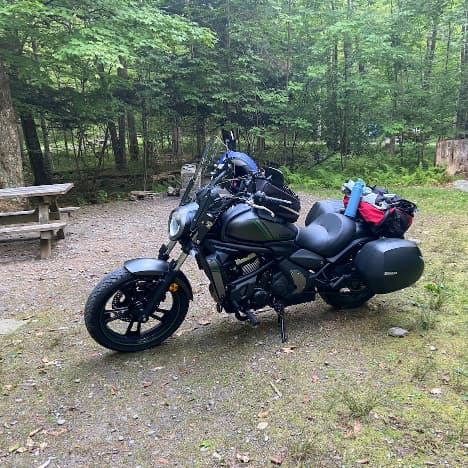 Kristin had a bachelorette party to attend over the weekend, leaving me free to my own devices. I had been noodling on a motorcycle camping trip since getting the bikes last fall, and following a handful of misfires earlier this summer the independence I would have it seemed like a fine time to load up the saddlebags with a tent and sleeping bag. This would not be the first trip camping off the back of my bike, but it would be the first one where I would be entirely detached from the world and making my own way as I saw fit.
