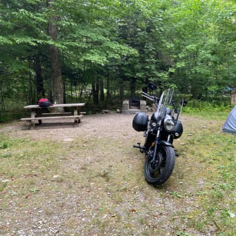 After a refreshing libation, I finished my route to arrive at Taconic State Park. I would say I chose Taconic because of some interesting reason, but I ended Day 1 there because they had an open spot for my tent and were the only ones in the area that did. (In the earlier planning stages of this trip I had looked into dispersed camping options, but settled on State Parks for their modern facilities such as running water.) Taconic was excellent in that regard, having an old iron ore mine which fills naturally these days with spring water, creating a refreshing lake. Did I mention this trip was during a heat wave? Ah, yeah, the lake was a joy to arrive at following a long day of riding fully clad in motorcycle gear.