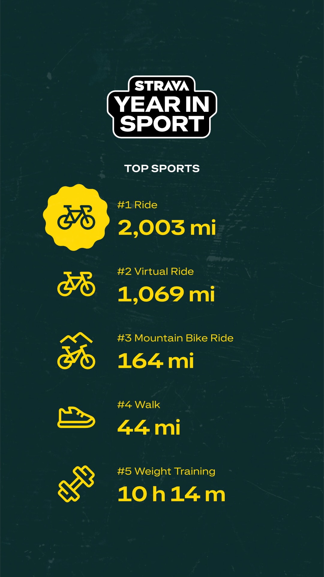 Strava changed things up a bit, so it’s not a perfect comparison with last year. Below are the bits of it I found interesting.